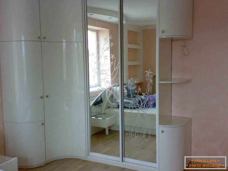 Тази тясна стая може да побере няколко десетки книги и списания, благодарение на специални рафтове в главата на леглото. Струва си да се отбележи, че те също имат свещи, а в основата са вградени шкафчета.