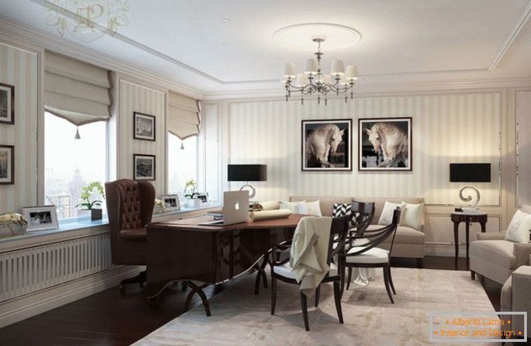 Интериорът е максимално отворено пространство с минимален брой декоративни прегради. Големите плъзгащи се стъклени панели, които заменят предната фасада, осигуряват на всички стаи достатъчно естествена светлина и въздух.