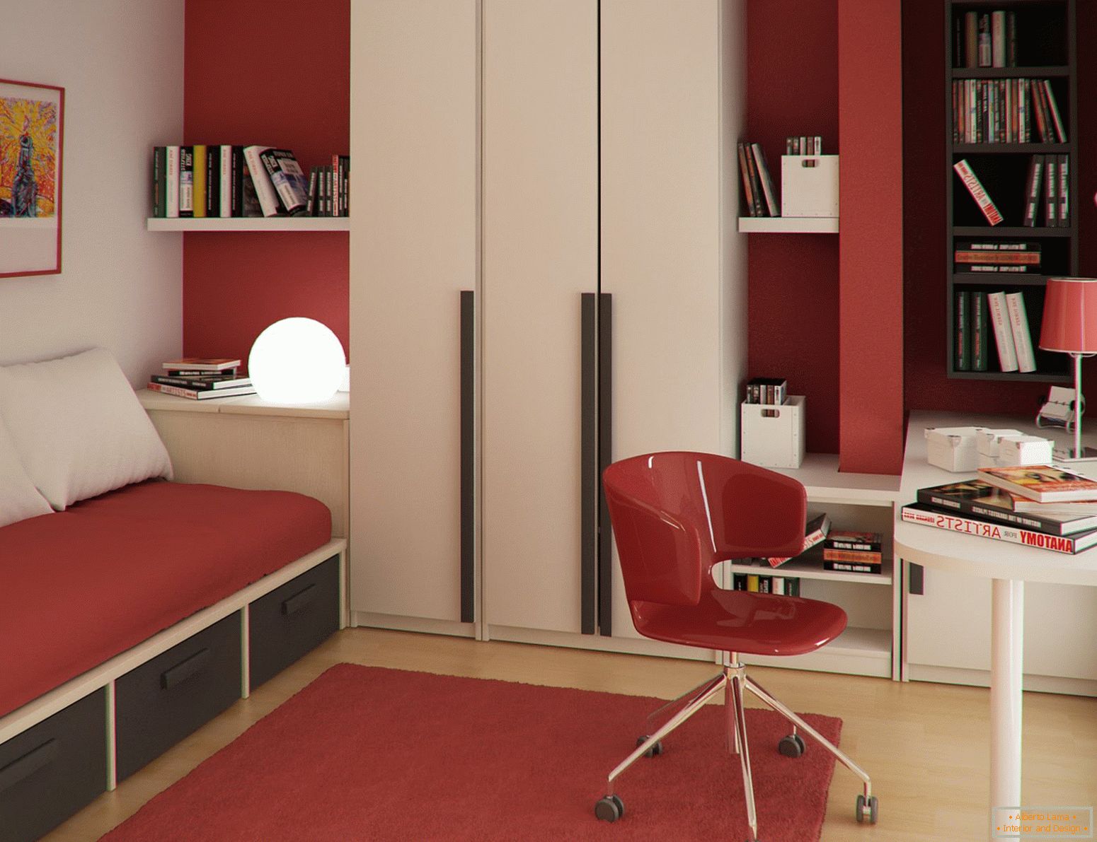 Успешен вариант за завършване на студиото с изкуствен камък. Малка площ от каменни вложки оживяла просторната стая и й давали уважение.