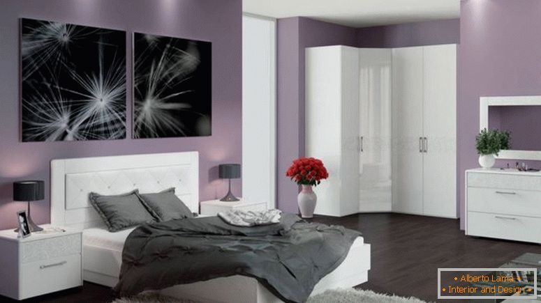 - с лилаво - отлична възможност за творчески натура. Виолето не позволява на искрата на творчеството непрекъснато да хвърля нови идеи. Той неразпознаваемо променя белите интериори. Всичко в тях изглежда загадъчно и необичайно;